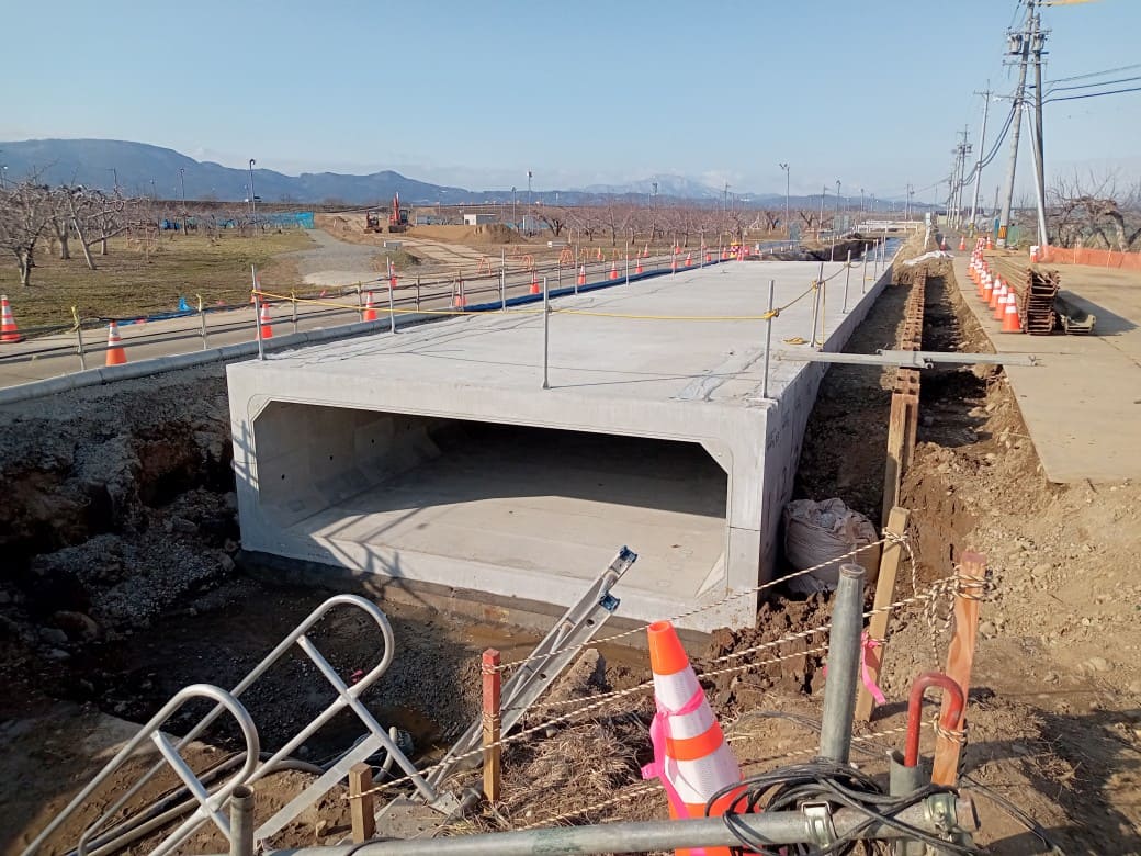 発注時には三分割ボックスカルバートの設計でしたが、発注者、施工者共に工期短縮と安全面のリスク回避の理解を得られ、二分割ボックスカルバートに変更。